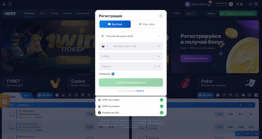 1Вин – современная букмекерская контора и онлайн казино. Сайт конторы обладает высоким функционалом и удобным интерфейсом. Чтобы получить доступ к играм на деньги, бонусам и другим функциям игорного заведения, потребуется регистрация на сайте. Ее можно выполнить тремя простыми способами: