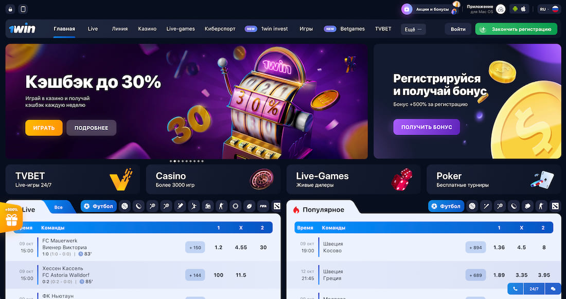 1Win – современное онлайн казино, которое предлагает своим пользователям широкий ассортимент игровых автоматов от лучших мировых провайдеров. Также на официальном сайте можно найти ставки на различных спортивные мероприятия, карточные и настольные игры. Чтобы играть в слоты на реальные деньги, потребуется зарегистрироваться на сайте. А в случае блокировки основного домена можно скачать приложение или использовать актуальное зеркало.
